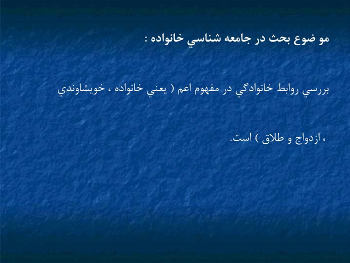 بررسي روابط خانوادگي در مفهوم اعم ( يعني خانواده . خويشاوندي