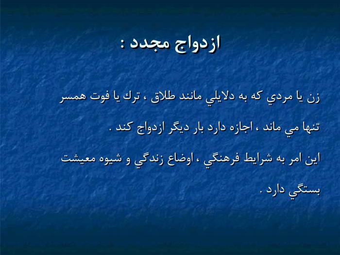 زن يا مردي كه به دلايلى مانند طلاق ٠ ترك يا فوت همسر