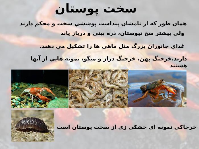 دارند.خرچنگ پهن ،خرچنگ دراز و ميگو ،نمونه هايي از آنها